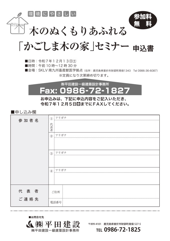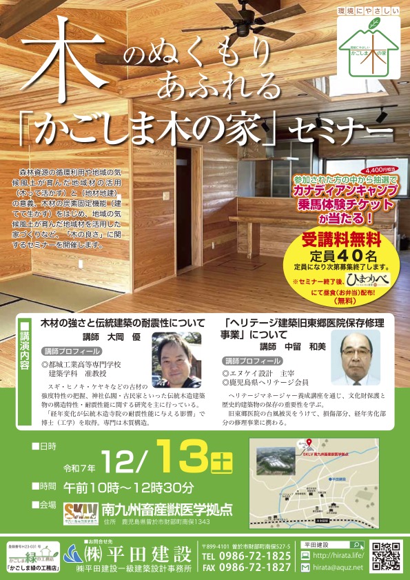 2025年11月21日 / 最終更新日時 : 2025年11月21日 webmaster その他 12/13(土)「かごしま木の家」(無料)セミナーのご案内 共有:FacebookTwitter コメントを残す コメントをキャンセルメールアドレスが公開されることはありません。 * が付いている欄は必須項目ですコメント 名前 * メール * サイト 新しいコメントをメールで通知 新しい投稿をメールで受け取る